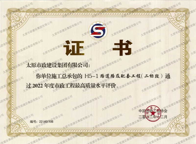 資質證書 營業執照 2022年度市政工程最高質量水平評價_H5-1路道路及配套工程(二標段) 2022年度工程建設誠信典型企業 中國施工企業管理協會_AAA級企業信用等級 2022年度全國市政工程建設優秀質量管理小組三等獎_''核動力QC小組”提高瀝青路面壓實度合格率”